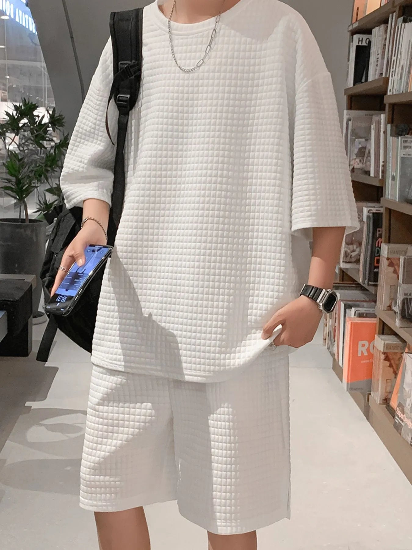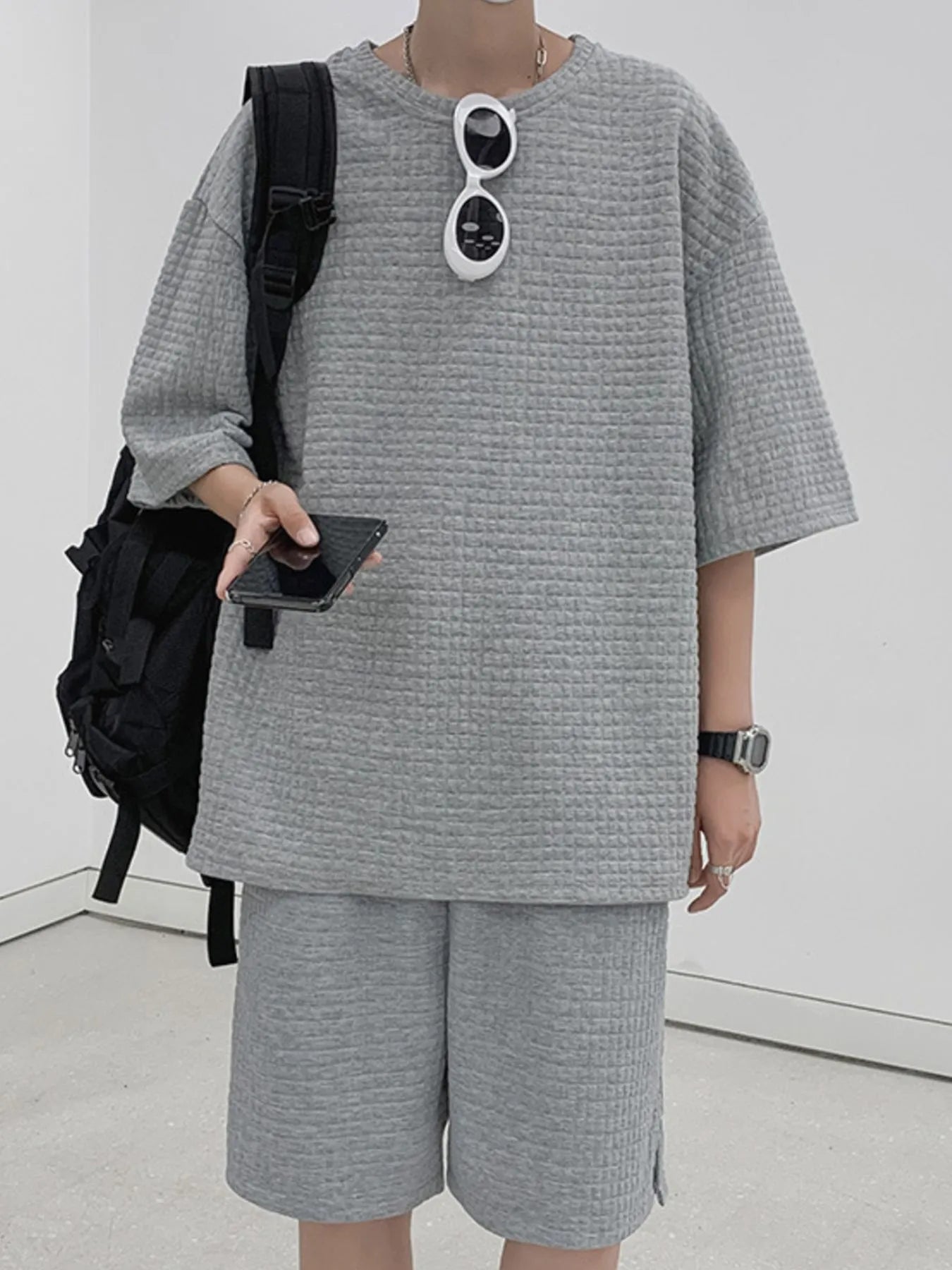 Men's Textured Short Sleeve T-Shirt and Shorts Set